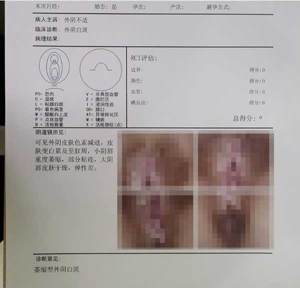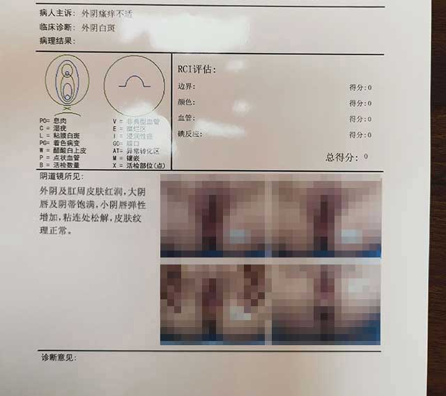 看到病情有好转,效果也比较明显,我们决定接着按老师给的方案治疗,在巩固用药治疗后,之前干燥粗糙的皮肤就变得比较光滑、饱满了,发白的地方也出现了零散的正常皮肤颜色,几个疗程的中成药治疗后我自己感觉没啥症状了,就去我们当地医院做了个关于外阴白斑的详细检查,报告结果显示:外阴皮肤弹性和颜色都好了,粘连处也松解了,萎缩的阴唇和阴蒂也变饱满了,医生说我的外阴白斑症状全部都消失了。